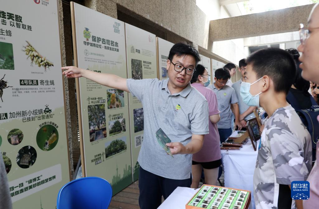 8月20日,上海市綠化管理指導站的工作人員(左)在科學(xué)集市上向同學(xué)們介紹昆蟲(chóng)知識。