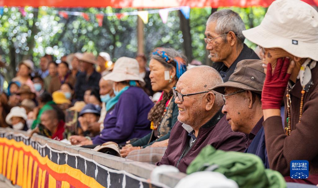 8月19日,在拉薩市羅布林卡園林內,觀(guān)眾在觀(guān)看藏戲表演。