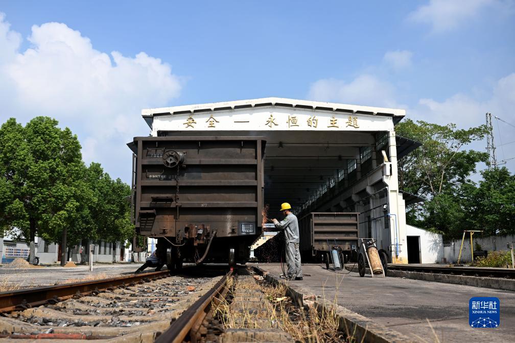 正值暑運,中國鐵路上海局集團有限公司杭州北車(chē)輛段合肥運用車(chē)間臨修班組的熔接工們堅守崗位,忙著(zhù)對列車(chē)車(chē)體的破損及變形部位進(jìn)行焊接維修,保障列車(chē)的安全開(kāi)行。