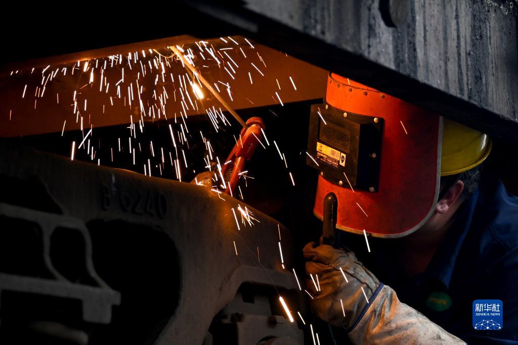 正值暑運,中國鐵路上海局集團有限公司杭州北車(chē)輛段合肥運用車(chē)間臨修班組的熔接工們堅守崗位,忙著(zhù)對列車(chē)車(chē)體的破損及變形部位進(jìn)行焊接維修,保障列車(chē)的安全開(kāi)行。