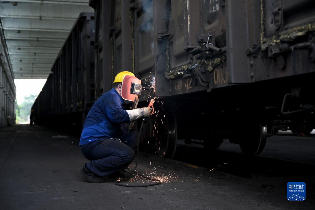 正值暑運,中國鐵路上海局集團有限公司杭州北車(chē)輛段合肥運用車(chē)間臨修班組的熔接工們堅守崗位,忙著(zhù)對列車(chē)車(chē)體的破損及變形部位進(jìn)行焊接維修,保障列車(chē)的安全開(kāi)行。