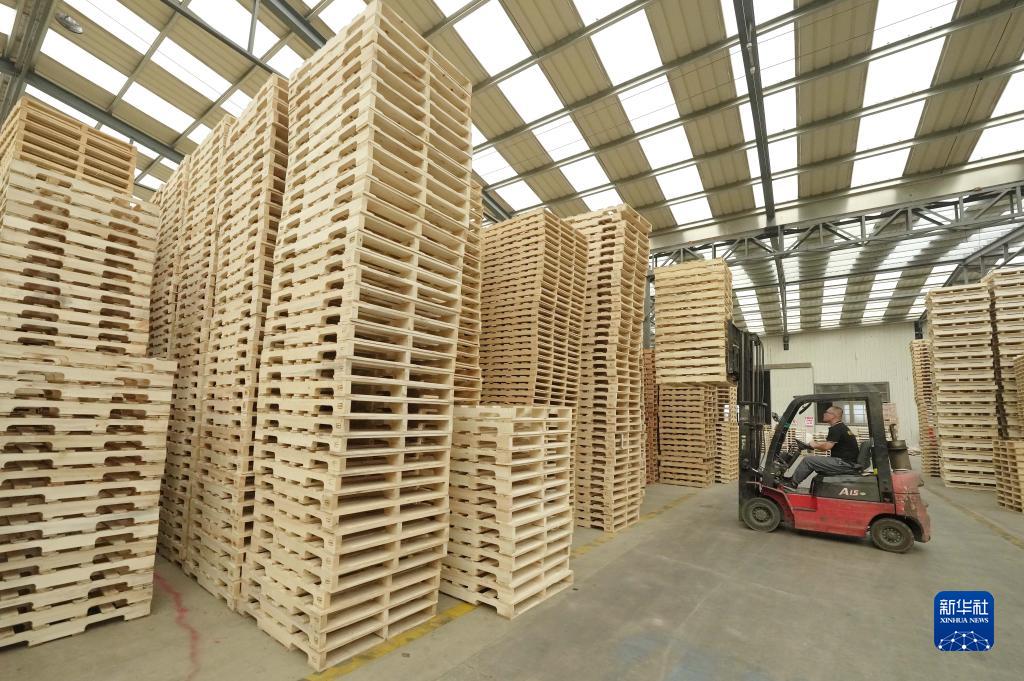 8月20日,工人在唐山市豐南區小集鎮錢(qián)莊村一家木質(zhì)包裝產(chǎn)品企業(yè)的成品庫操作叉車(chē)碼放產(chǎn)品。
