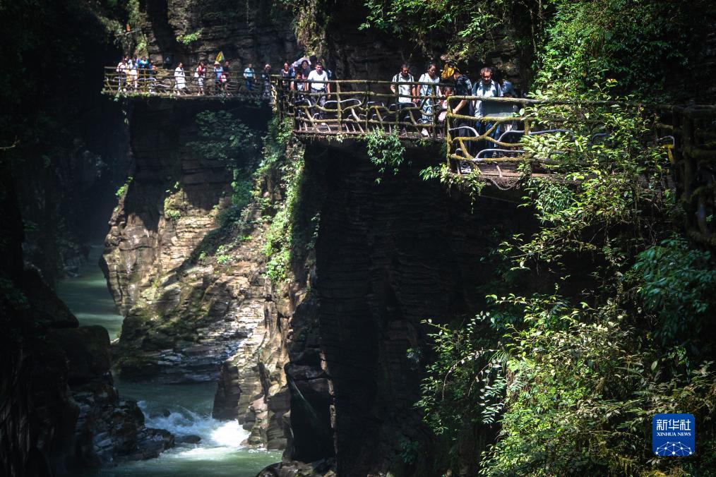 8月20日,游客在湖北省恩施州建始縣地心谷景區游玩。
