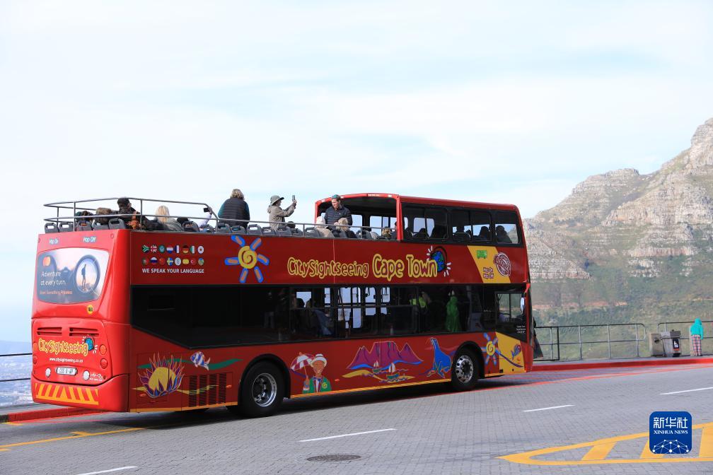8月12日,游客在南非開(kāi)普敦乘坐觀(guān)光車(chē)游覽桌山。