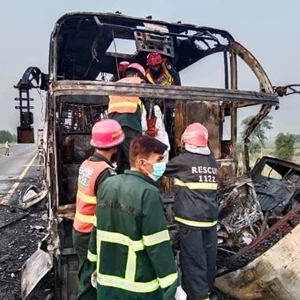 巴基斯坦救援部門(mén)20日證實(shí),巴東部旁遮普省當天上午發(fā)生一起交通事故,一輛載有約40名乘客的大客車(chē)在旁遮普省哈菲扎巴德地區與一輛裝有油桶的小貨車(chē)相撞并起火,造成至少20人死亡、15人受傷。
