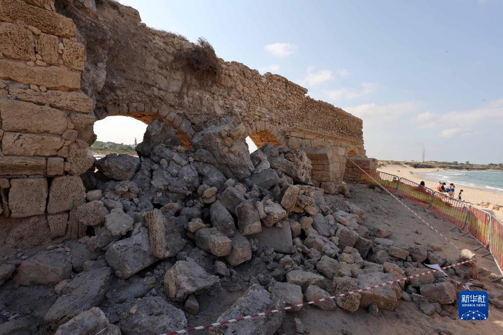 這是8月20日在以色列城市凱撒里亞拍攝的古羅馬渡槽坍塌現場(chǎng)。