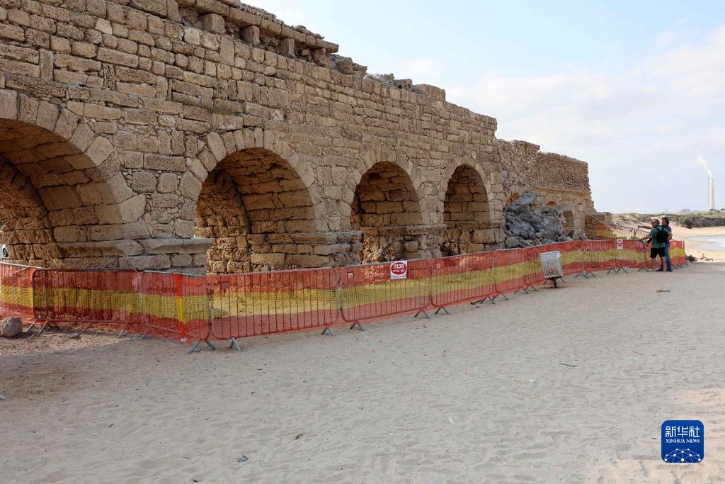 這是8月20日在以色列城市凱撒里亞拍攝的古羅馬渡槽坍塌現場(chǎng)。