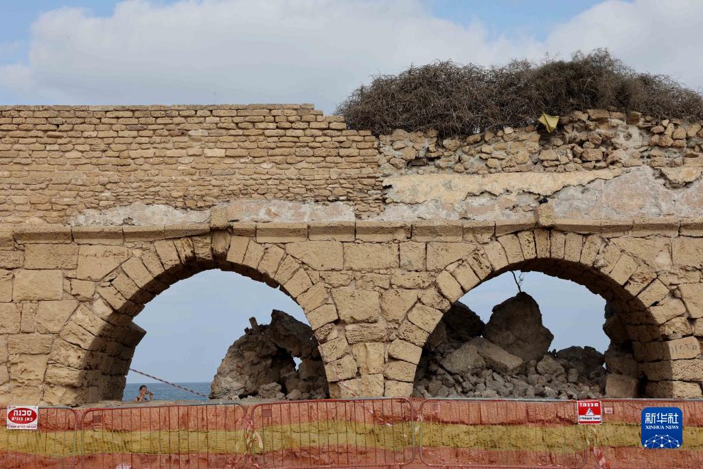 這是8月20日在以色列城市凱撒里亞拍攝的古羅馬渡槽坍塌現場(chǎng)。