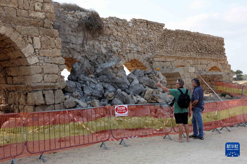 這是8月20日在以色列城市凱撒里亞拍攝的古羅馬渡槽坍塌現場(chǎng)。
