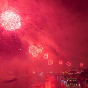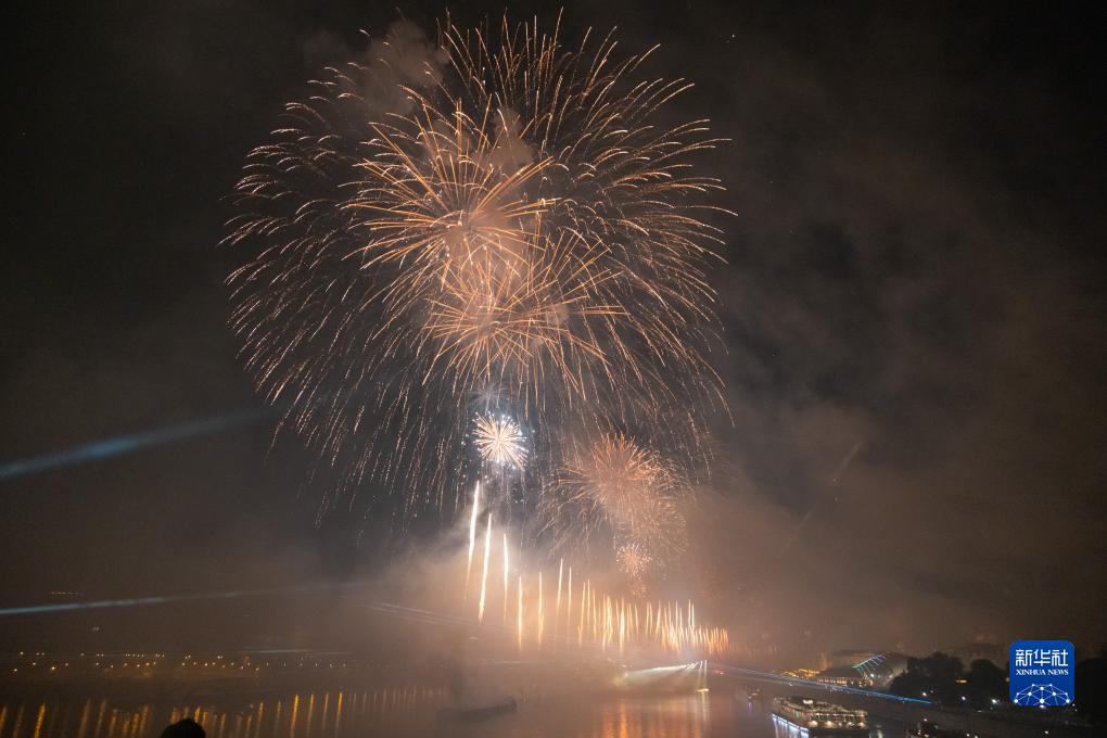 8月20日,煙花在匈牙利首都布達佩斯的多瑙河上空綻放。