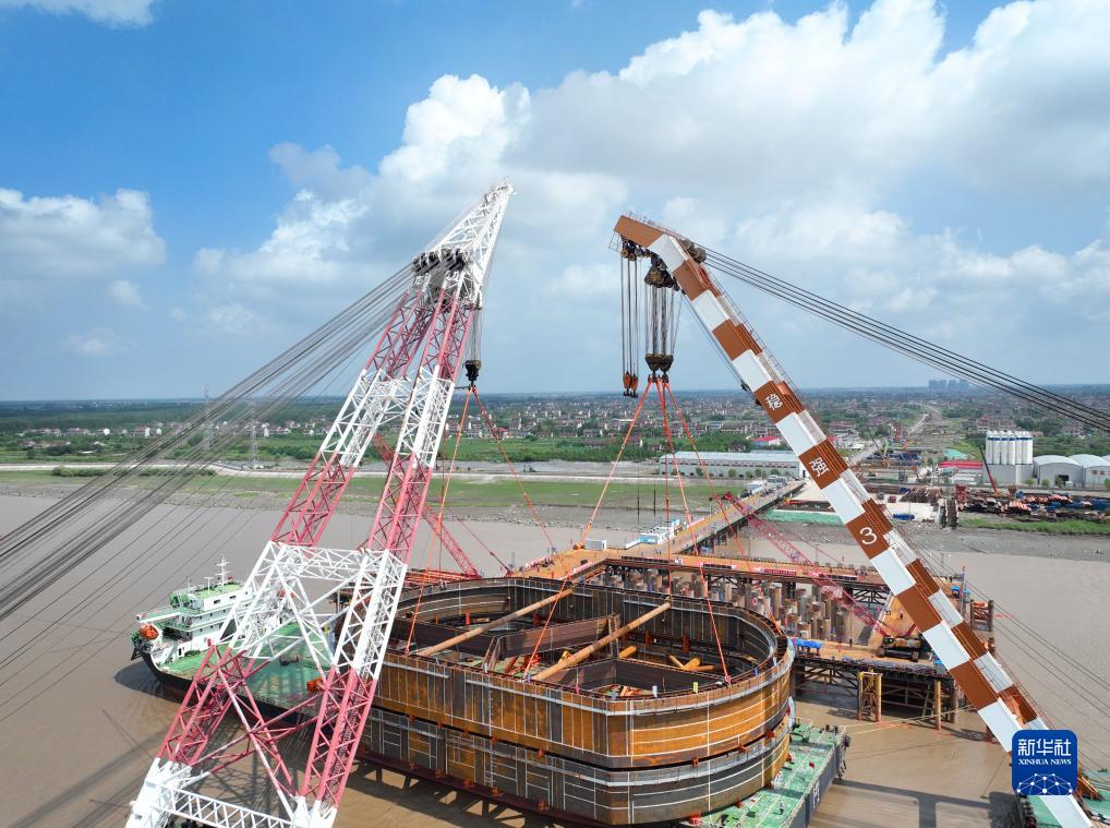 8月20日,由中鐵大橋局施工的崇啟公鐵長(cháng)江大橋4號主墩首節鋼圍堰安裝到位,標志著(zhù)崇啟公鐵長(cháng)江大橋4號主墩正式轉入大體積承臺施工階段。