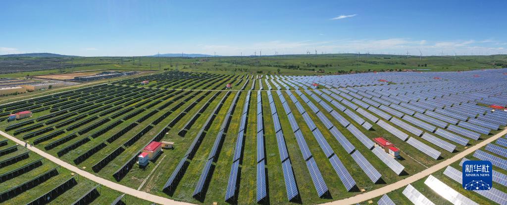 光伏板整齊排列在位于河北張家口的國家級可再生能源示范區內(8月18日攝,無(wú)人機照片)。由國網(wǎng)冀北電力建設運營(yíng)的國家風(fēng)光儲輸示范工程將當地豐富的風(fēng)能、太陽(yáng)能轉化為綠色清潔的電能。