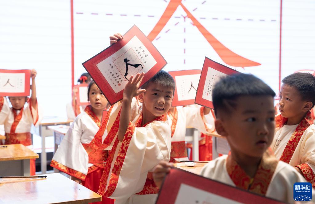 8月21日,一年級新生在貴州省銅仁市雅禮學(xué)校新生入學(xué)儀式上舉行開(kāi)筆禮。