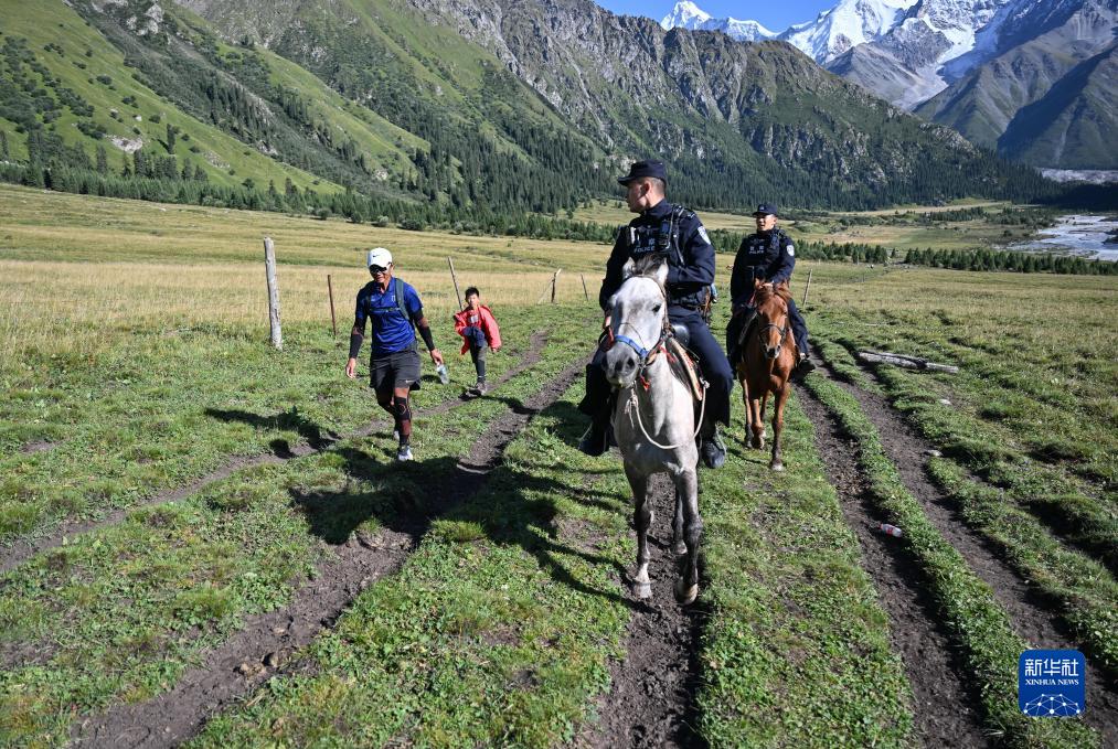 民警在夏塔古道對徒步較深的游客進(jìn)行勸返(8月19日攝)。