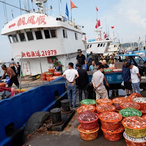 在浙江省舟山市,到港漁運船不時(shí)靠泊舟山國際水產(chǎn)城碼頭,帶來(lái)一筐筐新鮮梭子蟹。從出艙、轉運、分揀,再到打包、發(fā)貨,無(wú)數人為了梭子蟹而忙碌,舟山國際水產(chǎn)城新鮮水產(chǎn)交易火熱。