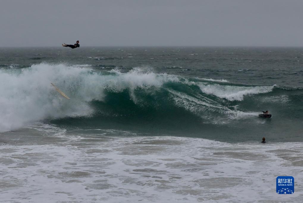 這是8月20日在美國加利福尼亞州紐波特比奇拍攝的海浪。