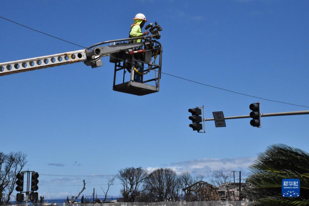 8月20日,工人在美國夏威夷州拉海納修復電力系統。