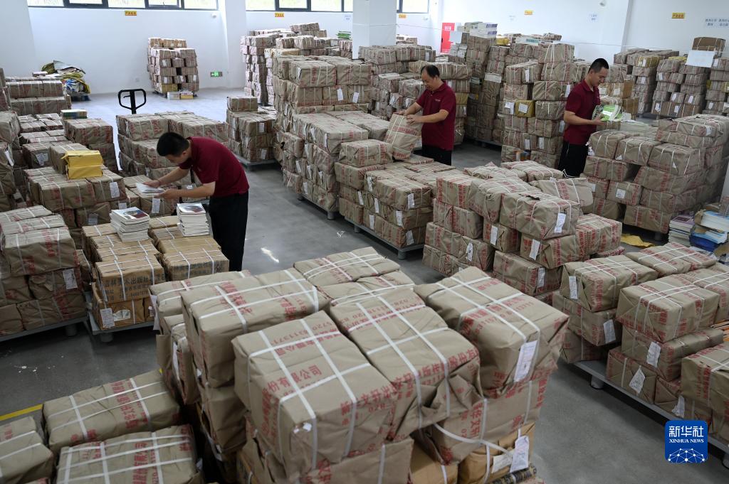8月21日,四川新華文軒內江市東興分公司工作人員在教材倉庫內清點(diǎn)整理新學(xué)期教材。
