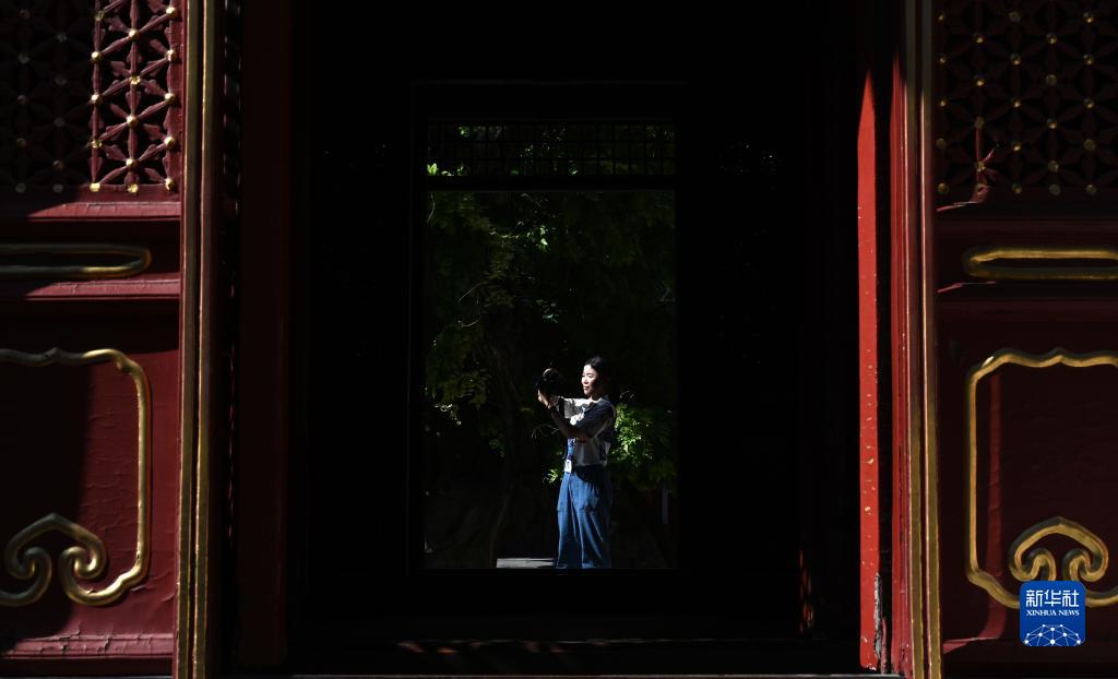 8月21日,香港青年學(xué)生張仲倩記錄故宮御花園萬(wàn)春亭保存現狀。