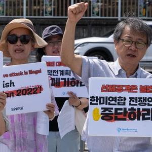 韓國民間團體集會(huì )抗議韓美聯(lián)合軍演