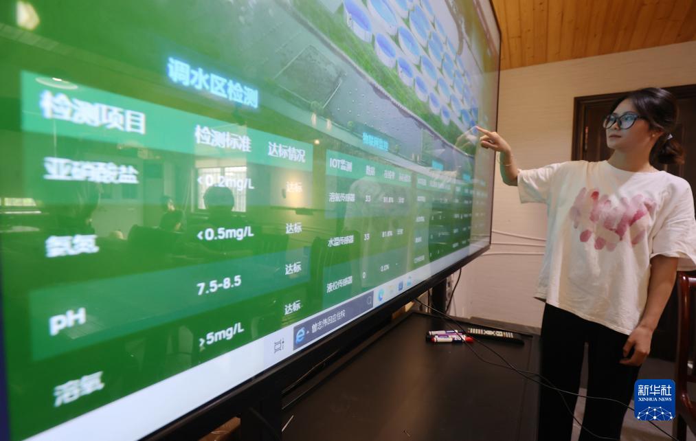 8月22日,在德清縣下渚湖街道和睦村“數字漁倉”養殖基地,管理員在查看養殖動(dòng)態(tài)數據。