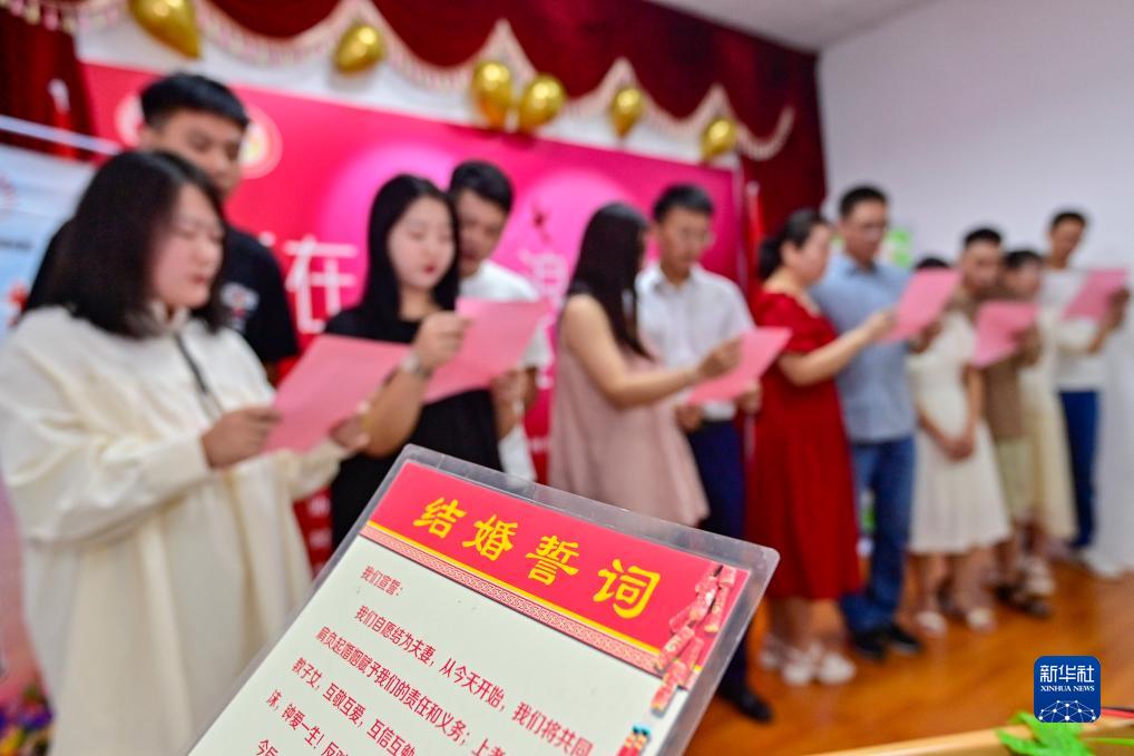 8月22日,新人在山東省青州市政務(wù)服務(wù)中心民政局婚姻登記處宣讀結婚誓詞。