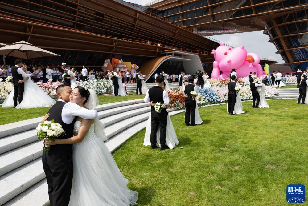 8月22日,新人在三江新區“三江之眼”舉行集體婚禮。
