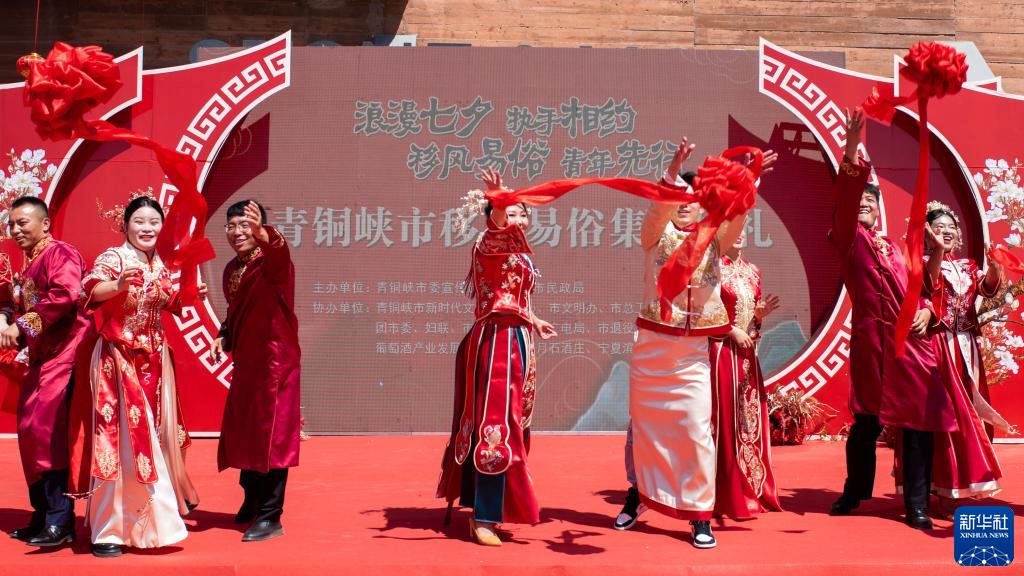 當日是七夕,寧夏青銅峽市舉辦“浪漫七夕執手相約,移風(fēng)易俗青年先行”青年集體婚禮。