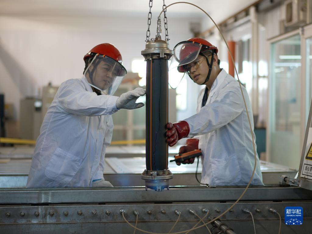 8月22日,工作人員在河北省滄州市孟村回族自治縣河北一塑管道制造有限責任公司靜液壓實(shí)驗室進(jìn)行產(chǎn)品檢測。