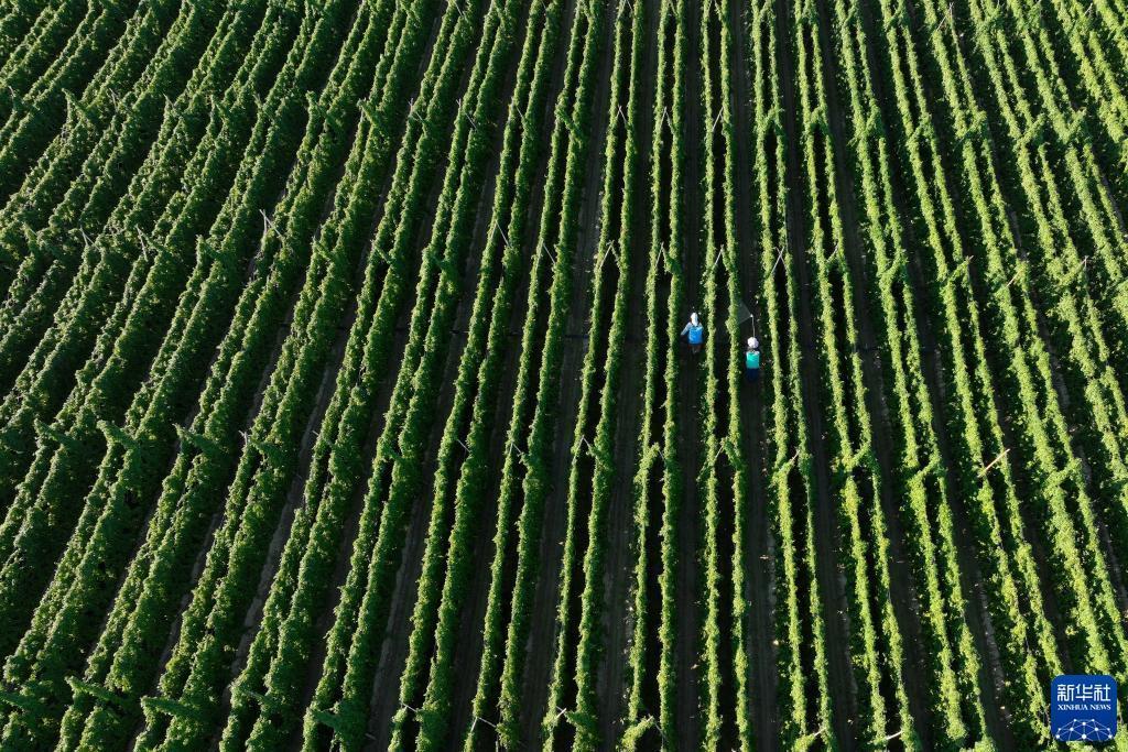 8月22日,吳橋縣于集鎮灣西王村村民在進(jìn)行淮山藥田間管理(無(wú)人機照片)。