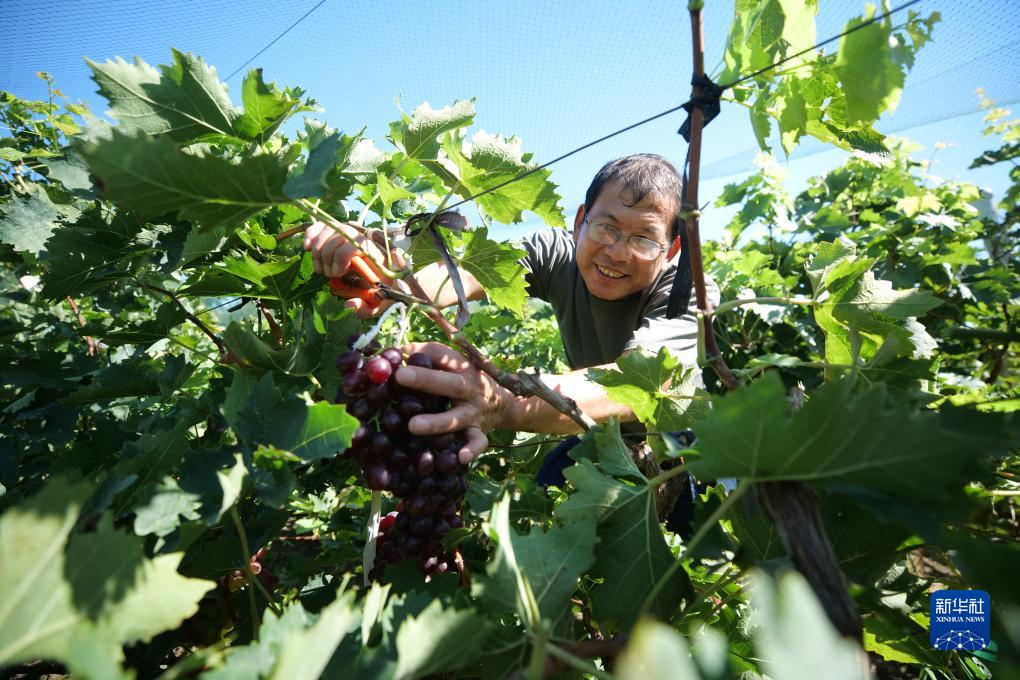 近日,河北省青縣的梨、葡萄陸續成熟,農民開(kāi)始適時(shí)收獲,不少游客前來(lái)采摘,田間地頭呈現出一派豐收的景象。