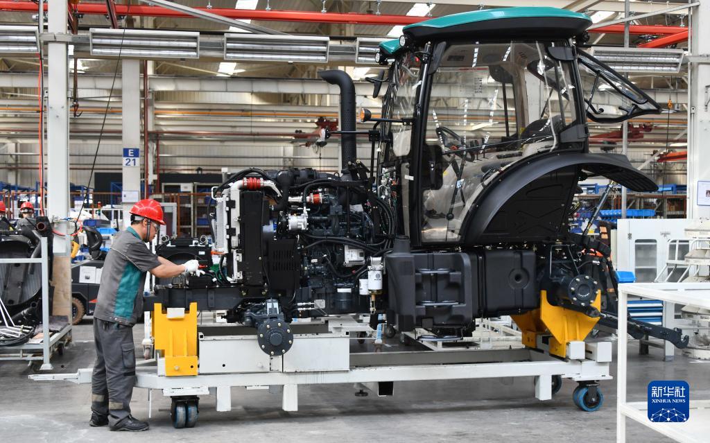 8月22日,在位于山東省濰坊市坊子區的濰柴雷沃智慧農業(yè)科技股份有限公司,工人在車(chē)間組裝生產(chǎn)農機設備。