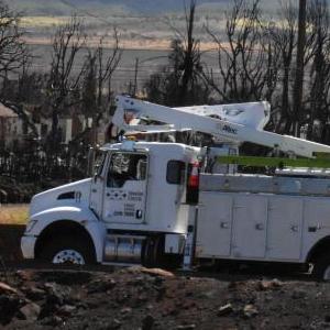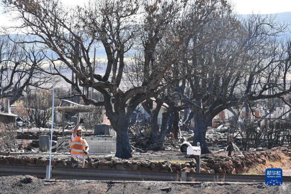 8月22日,工作人員在美國夏威夷州拉海納鎮進(jìn)行修復工作。