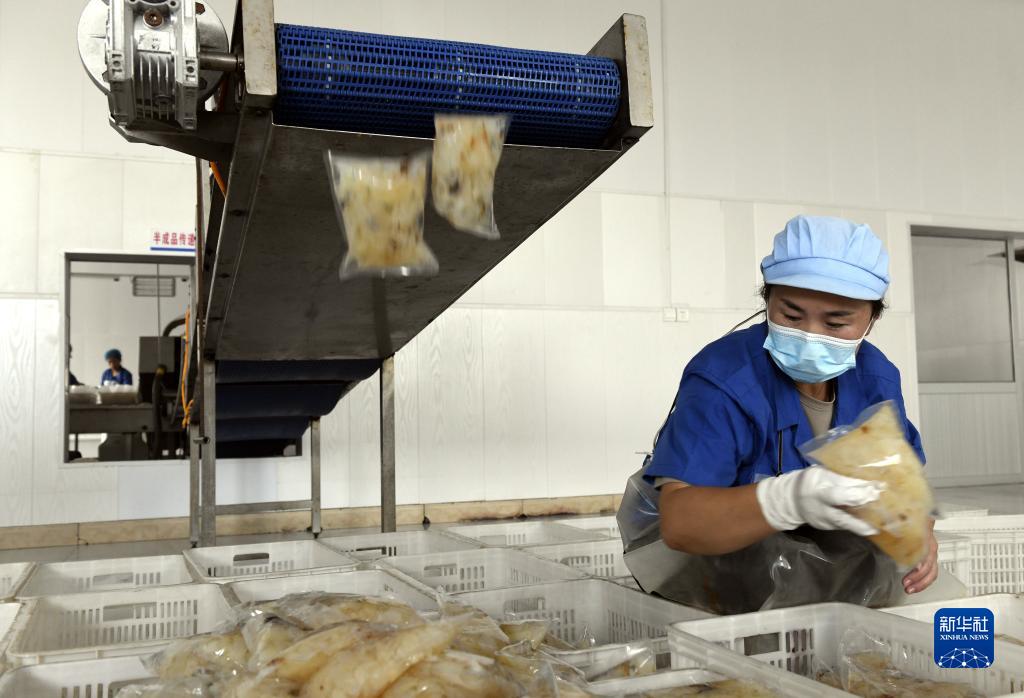 8月22日,在山東省濱州市沾化區馮家鎮隆旺水產(chǎn)的加工車(chē)間內,工人在裝箱即食海蜇。