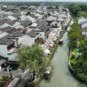 八里店鎮潞村古村落經(jīng)過(guò)改造已成為湖州鄉村旅游首選地(無(wú)人機照片,8月23日攝)。