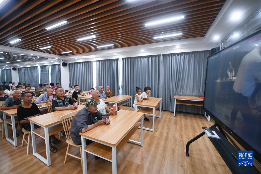 8月23日,在湖州市吳興區東林鎮東華村居家養老服務(wù)中心的影音室,老人們在觀(guān)看影片。
