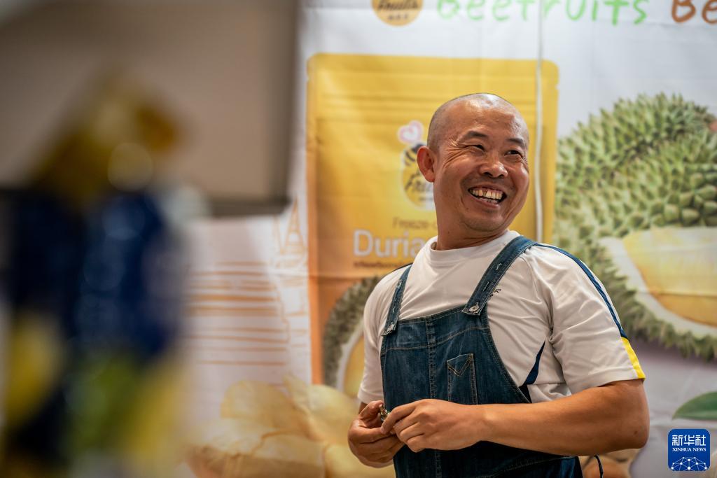 榴蓮是深受中國消費者喜愛(ài)的水果,也是泰國知名農產(chǎn)品。在不久前閉幕的第七屆中國—南亞博覽會(huì )上,46歲的泰國華商陳杰帶來(lái)的金枕頭榴蓮干大受消費者青睞。從展會(huì )開(kāi)幕,每天來(lái)購買(mǎi)產(chǎn)品、咨詢(xún)合作的人絡(luò )繹不絕。