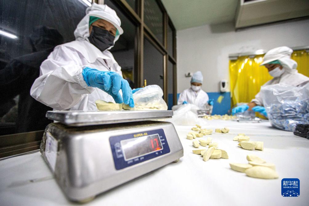 8月17日,在泰國尖竹汶府,尖竹汶果品公司工作人員稱(chēng)重榴蓮干。新華社記者 王騰 攝
