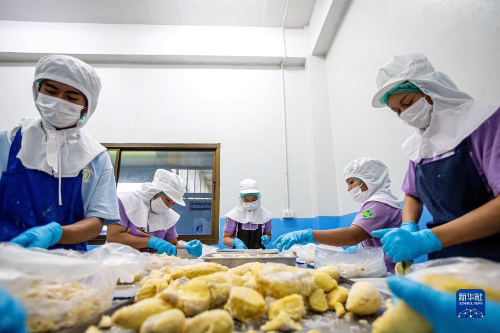 8月17日,在泰國尖竹汶府,尖竹汶果品公司工作人員切割榴蓮果肉。新華社記者 王騰 攝