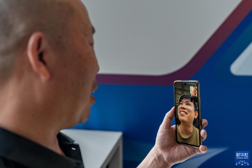 8月20日,泰國華商陳杰在南博會(huì )結束后和公司總經(jīng)理威查亞·普薩基打視頻電話(huà)。新華社記者 胡超 攝