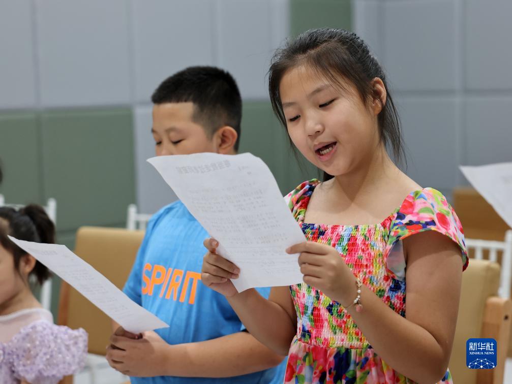 8月23日,小朋友在河北省滄州市青縣市民文化活動(dòng)中心聲樂(lè )培訓室進(jìn)行聲樂(lè )訓練。