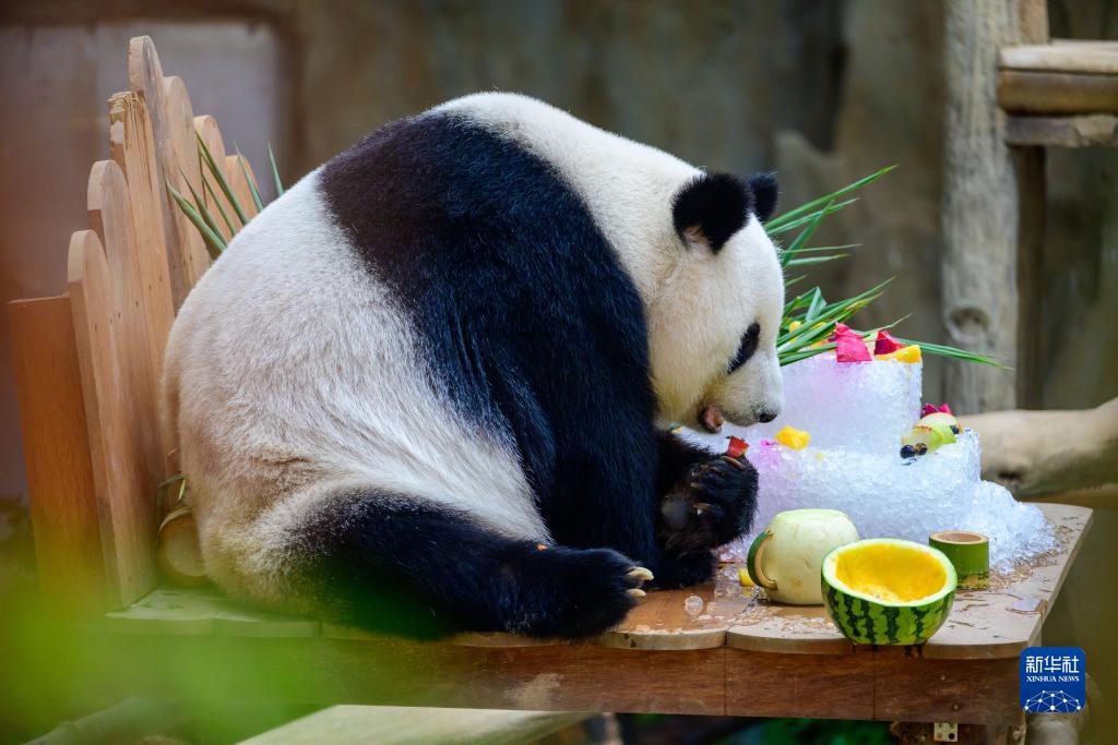 在馬來(lái)西亞國家動(dòng)物園大熊貓保護中心內,中國旅馬大熊貓夫婦“興興”和“靚靚”23日迎來(lái)了17歲生日。