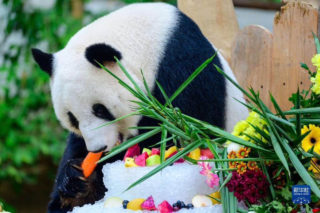 在馬來(lái)西亞國家動(dòng)物園大熊貓保護中心內,中國旅馬大熊貓夫婦“興興”和“靚靚”23日迎來(lái)了17歲生日。