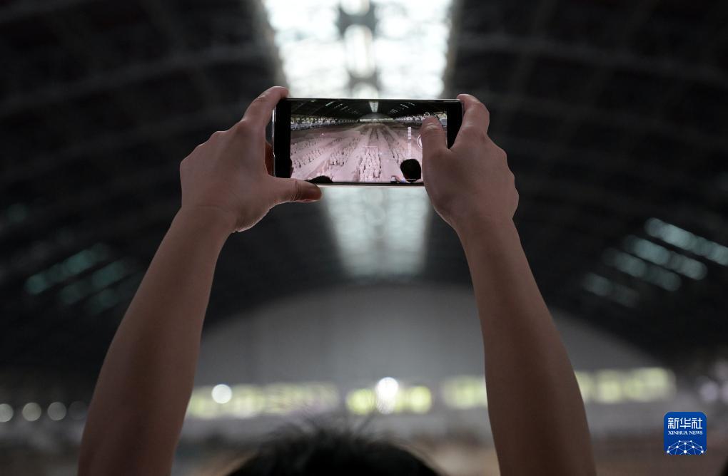 8月23日,一名游客在秦始皇兵馬俑博物館參觀(guān)時(shí)高舉手機拍照。