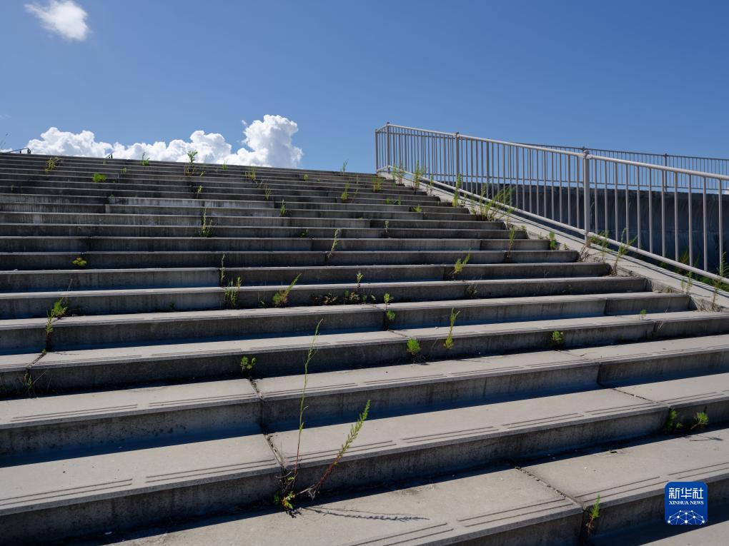 8月22日,日本福島縣相馬郡新地町釣師浜海水浴場(chǎng)的臺階上雜草密布。新華社記者 張笑宇 攝