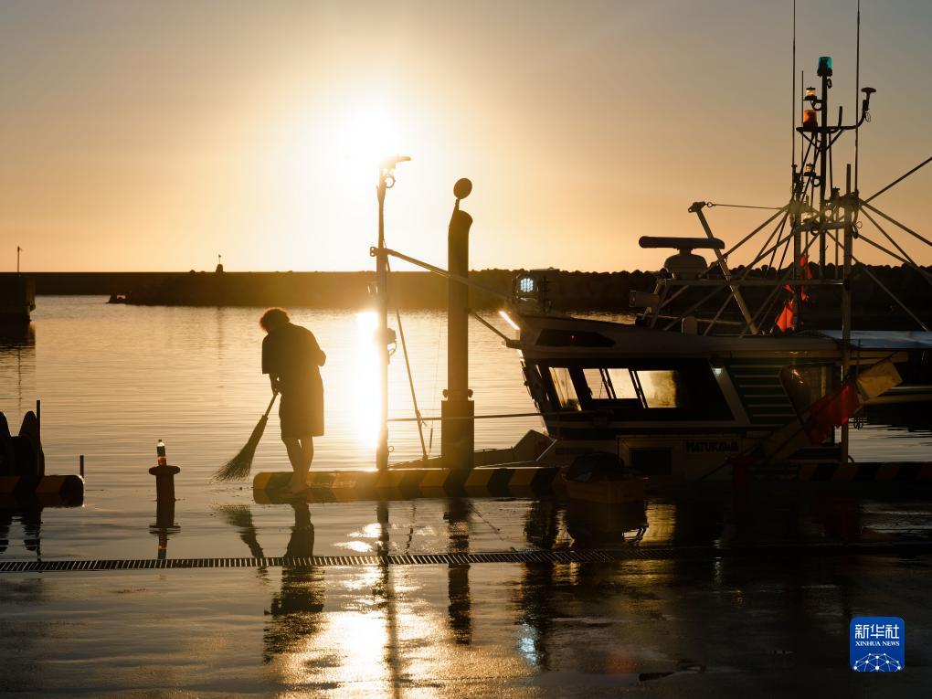 8月23日,捕魚(yú)歸來(lái)的漁民在日本福島縣新地町的漁港打掃。新華社記者 張笑宇 攝