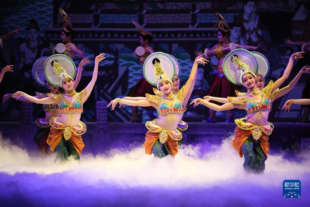 近日,中國經(jīng)典舞劇《絲路花雨》在甘肅省蘭州市的甘肅黃河劇院常態(tài)化駐場(chǎng)演出,甘肅省歌舞劇院的演員們演繹了優(yōu)美動(dòng)人的敦煌壁畫(huà)舞姿。