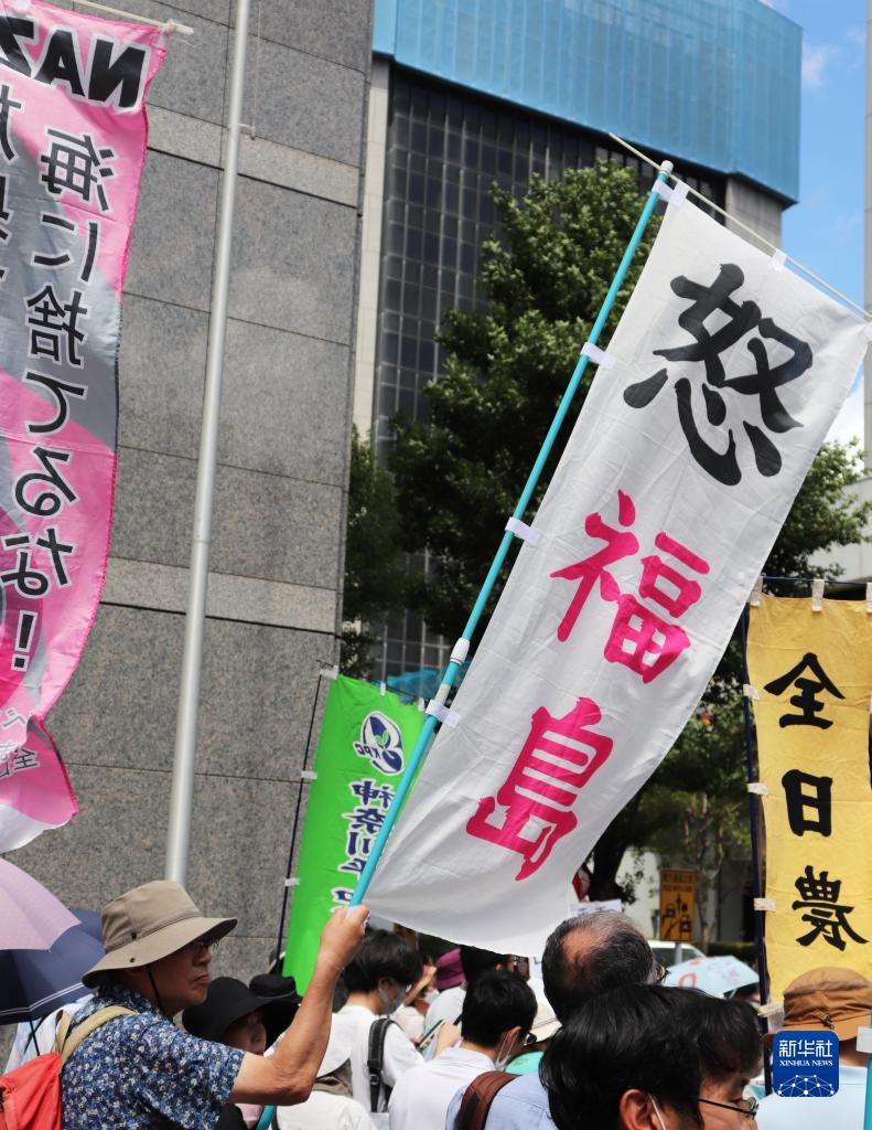 8月24日,日本民眾在東京電力公司總部前集會(huì ),抗議日本政府和東電公司無(wú)視民意啟動(dòng)核污染水排海。