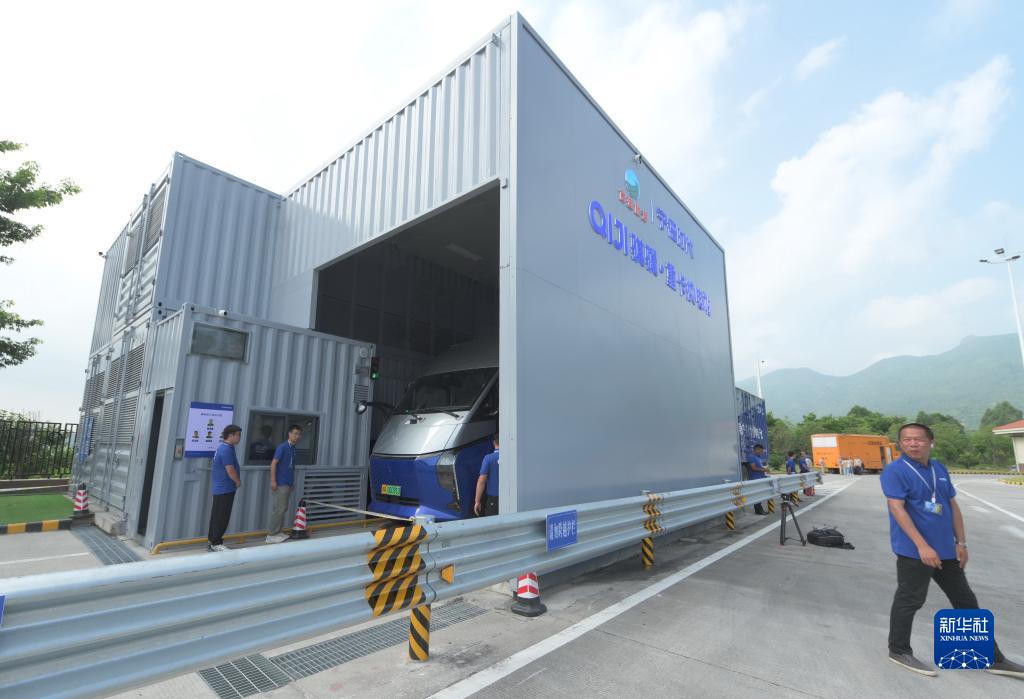 8月24日,采用底部換電技術(shù)的卡車(chē)在福州繞城高速公路長(cháng)樂(lè )服務(wù)區的“騏驥·重卡換電站”換電。