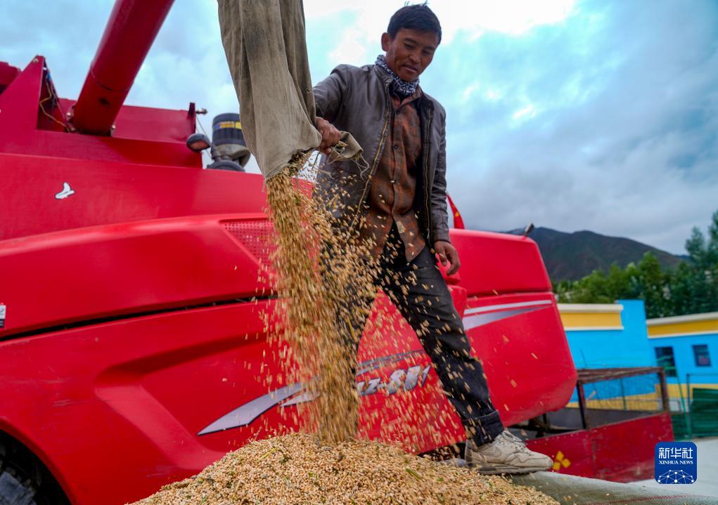 目前,西藏各地進(jìn)入秋收時(shí)節。西藏山南市乃東區的農民在抓緊收獲作物。